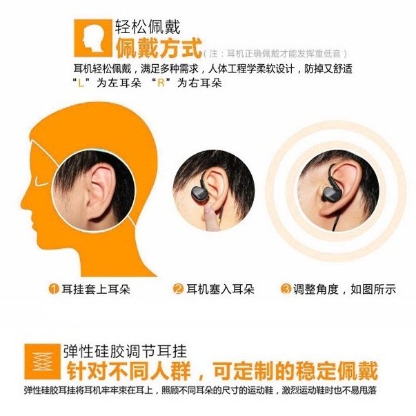 弯插头手机单边有线耳机带麦通话绕耳式舒适稳固跑步运动开车耳麦