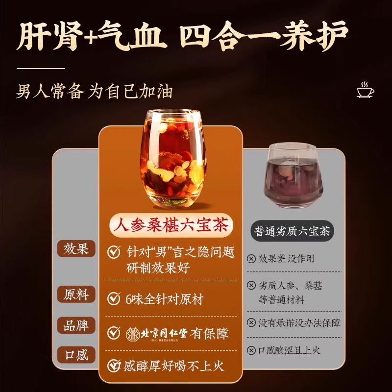 同仁堂人参枸杞玛咖黄精肉苁蓉杜仲八宝茶男人熬夜补精强肾养生茶