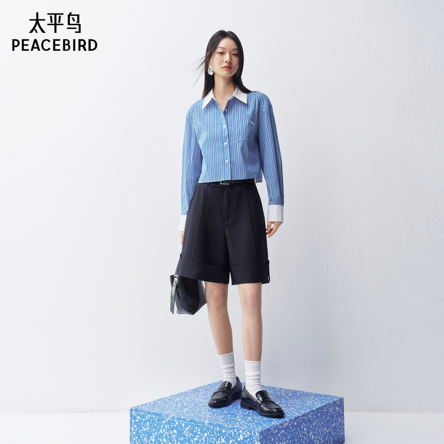 【商场同款】太平鸟26年夏季新款高腰阔腿藏蓝休闲短裤A1GCG2128