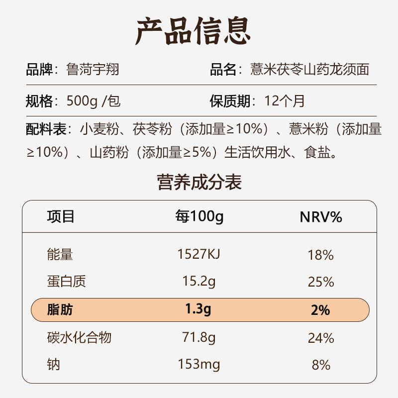 正宗薏米茯苓挂面面条龙须面山药手工整箱早餐速食养胃辅食健康
