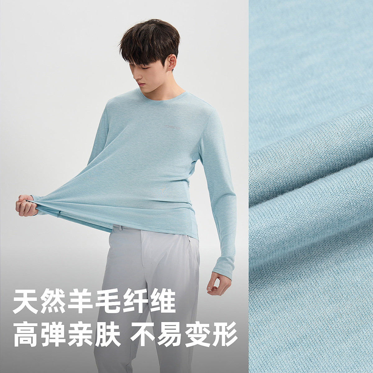 探路者美利奴羊毛长袖T恤抑菌除异味吸湿快干运动功能长袖T恤男