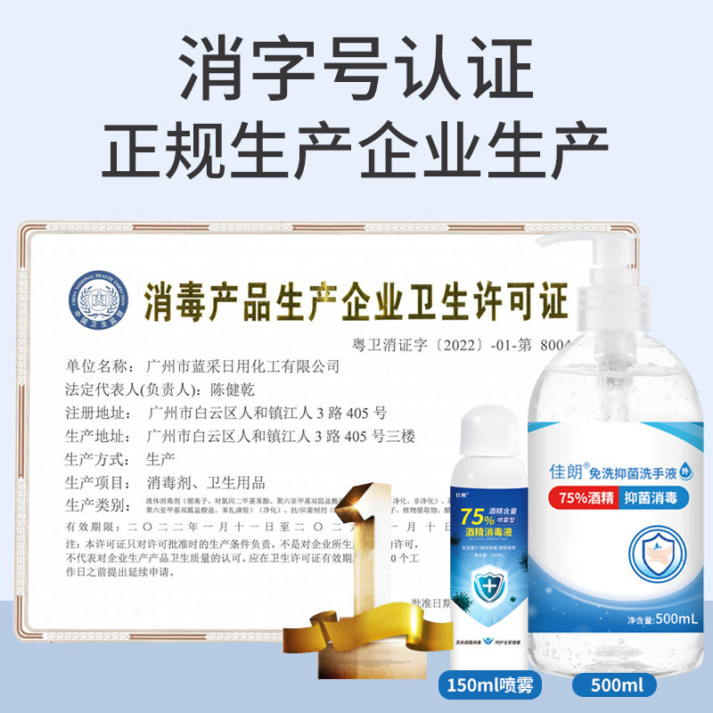 免洗洗手液消毒凝胶杀菌速干专用免手洗酒精消毒液手大按压瓶便携