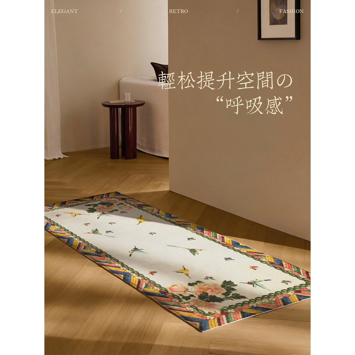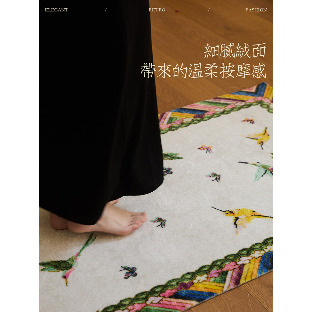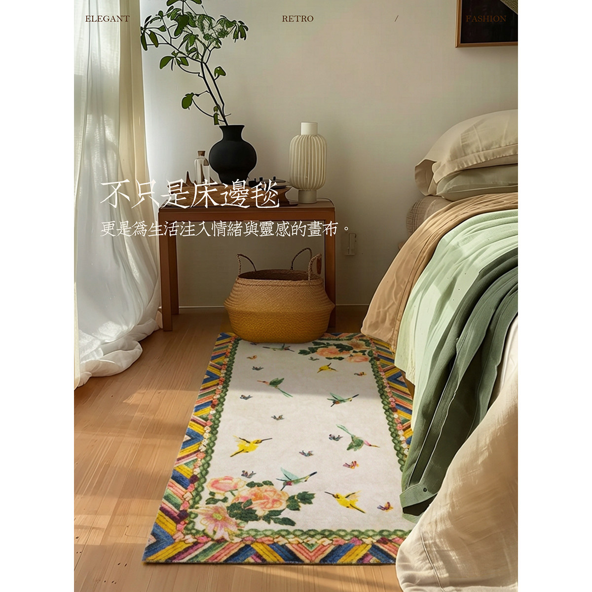 蜡笔派山茶栖羽床边毯轻奢高级新款客厅卧室地毯入户玄关地垫P