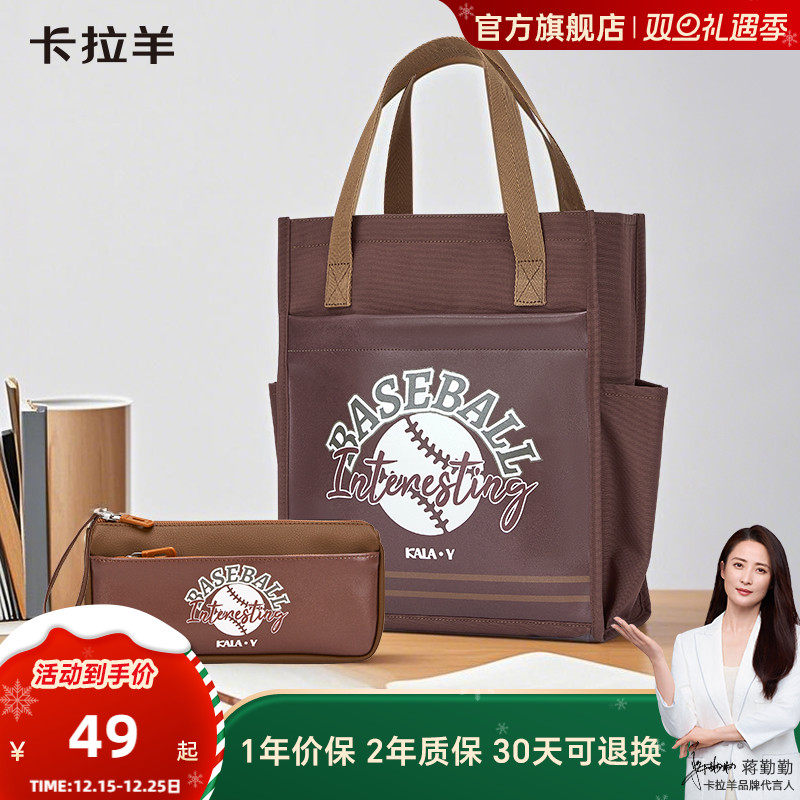 卡拉羊大容量多功能科学分区防泼水补习袋耐磨易打理轻便科学分区学生帆布袋