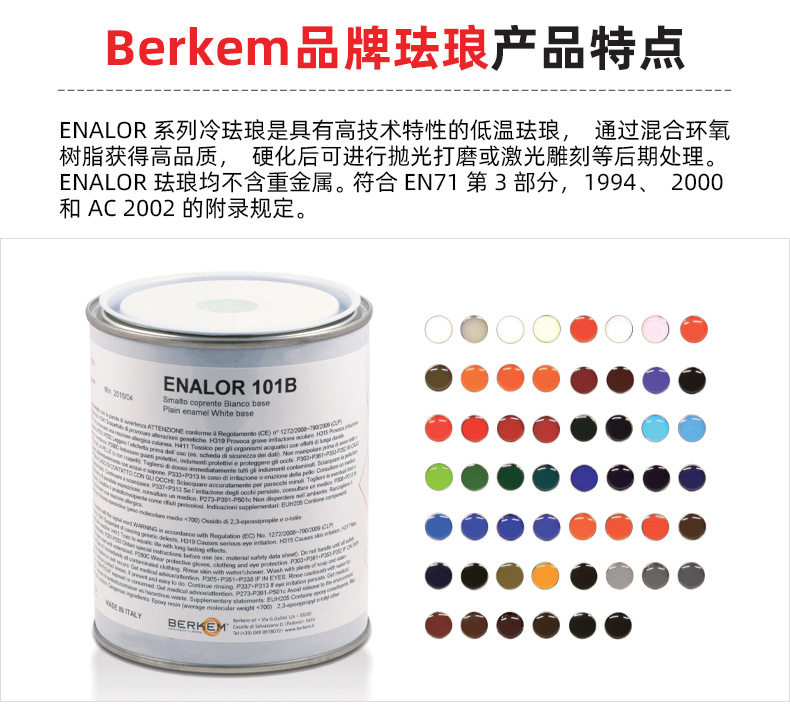 低温珐琅釉料意大利进口BERKEM低温冷彩免烧釉料珐琅漆原料透明色
