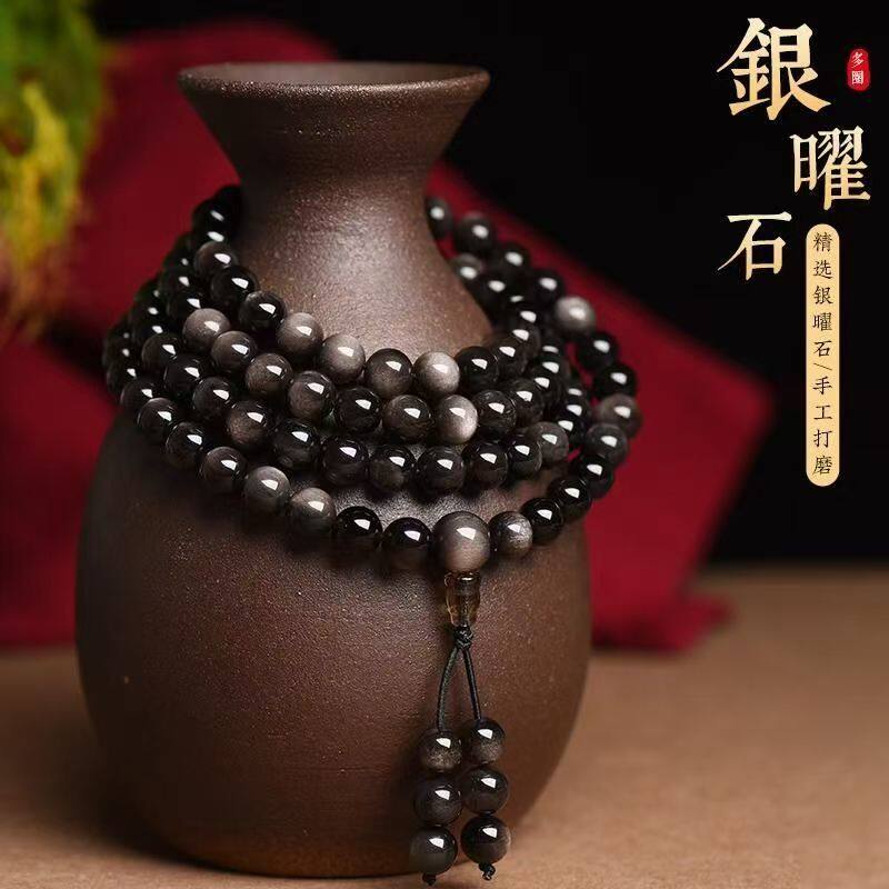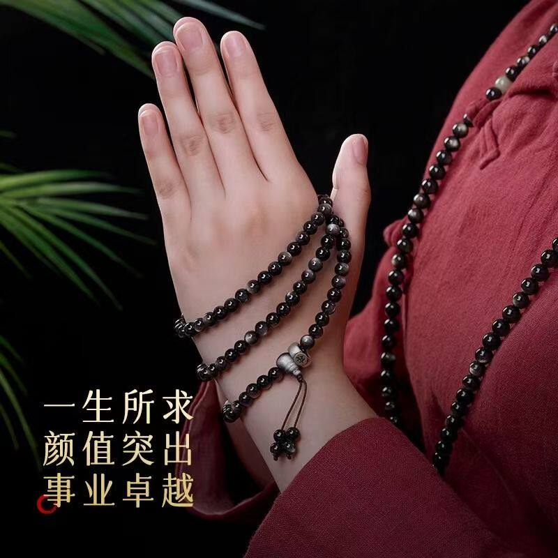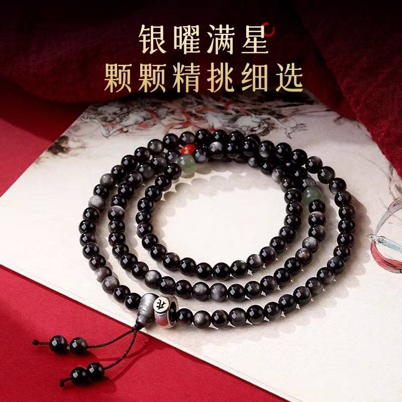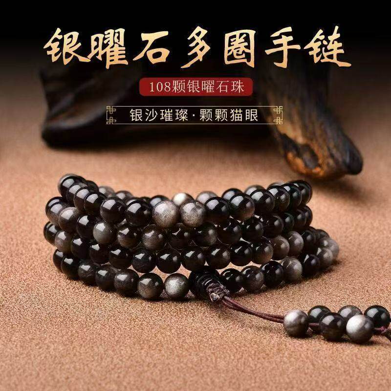 招财多圈手链银曜石新年礼物情侣饰品转运天然水晶佛珠