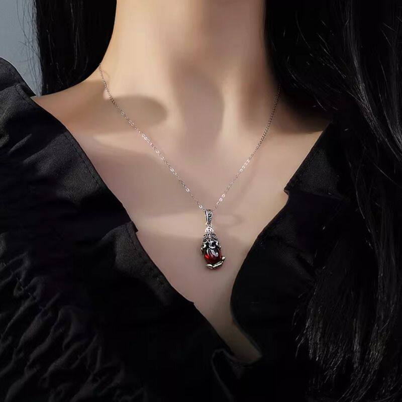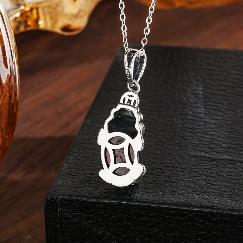 925纯银貔貅项链女士泰银复古民族风招财镶石榴石毛衣链秋冬新品