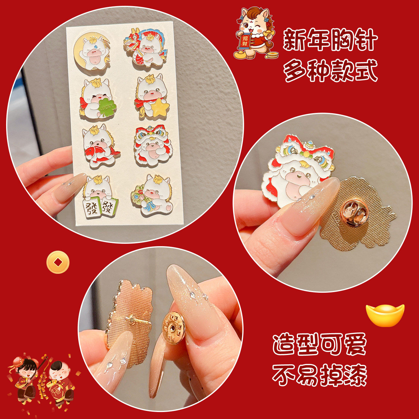 2026马年胸针精致徽章固定毛衣配饰别针新年喜庆氛围拜年礼品批发