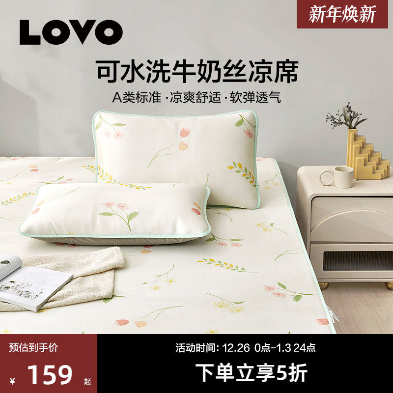 罗莱生活LOVO乐蜗家纺冰丝席A类可折叠可水洗凉席学生宿舍软席夏
