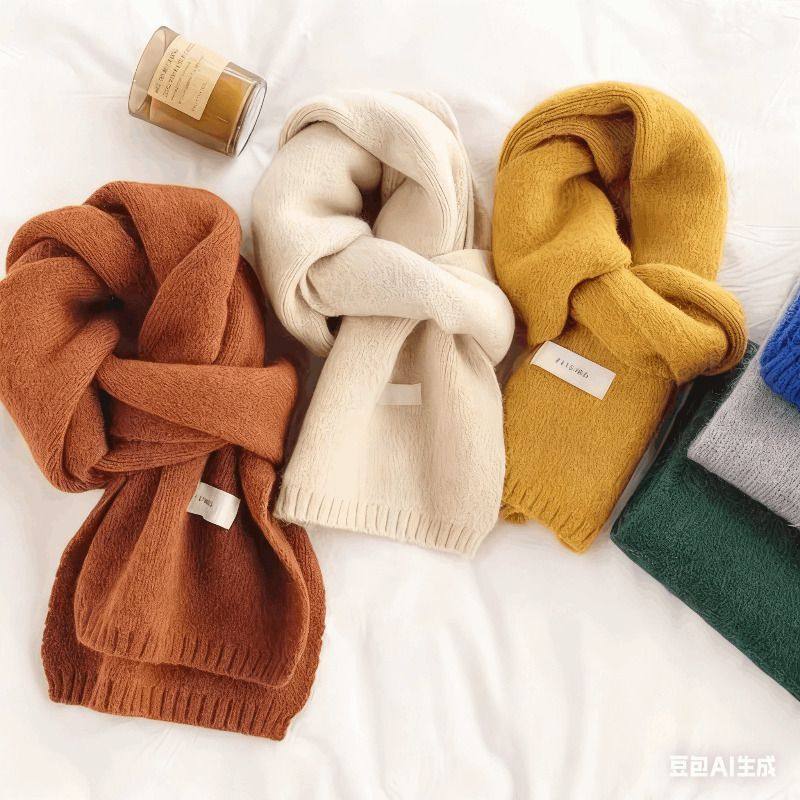 鹿毛绒围巾纯色男女冬季保暖针织围脖精致柔软红色咖色羊毛