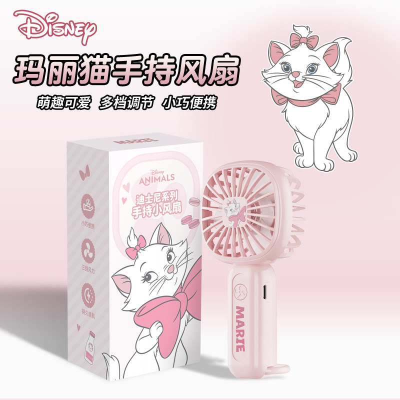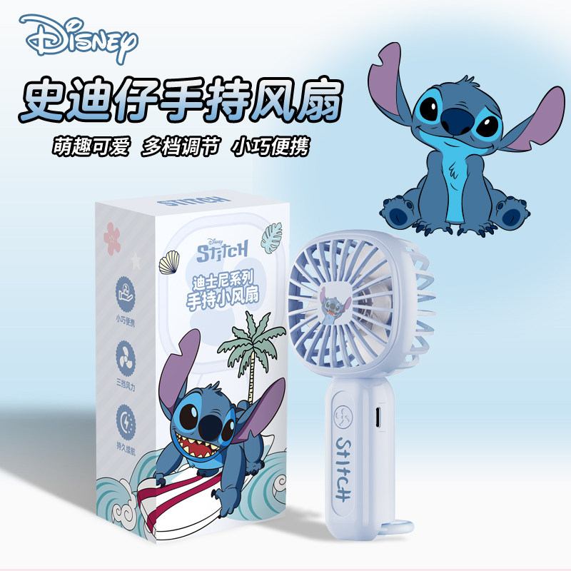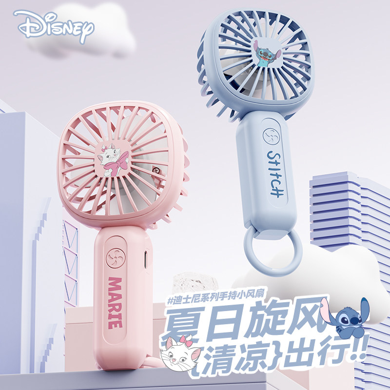 迪士尼DS11手持小风扇史迪仔玛丽猫情侣款小型电风扇超长续航静音便携式随身充电风扇迷你学生桌面户外小风扇