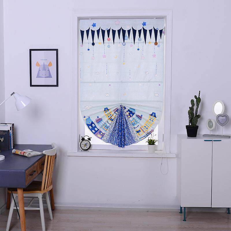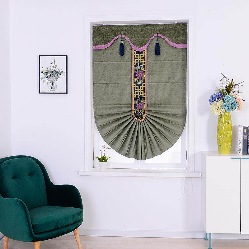 遮光窗帘中式雪尼尔飘窗罗马帘民宿卧室阳台布艺成品高密高新中式