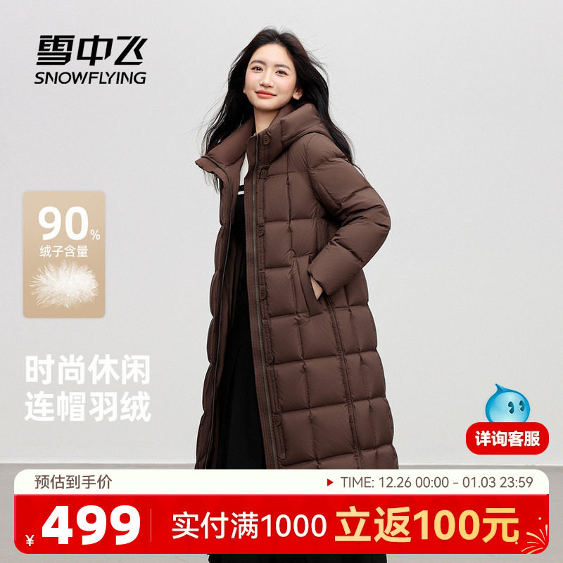 雪中飞2025冬新款女士加长韩版加厚羽绒服高贵分格简约保暖咖色