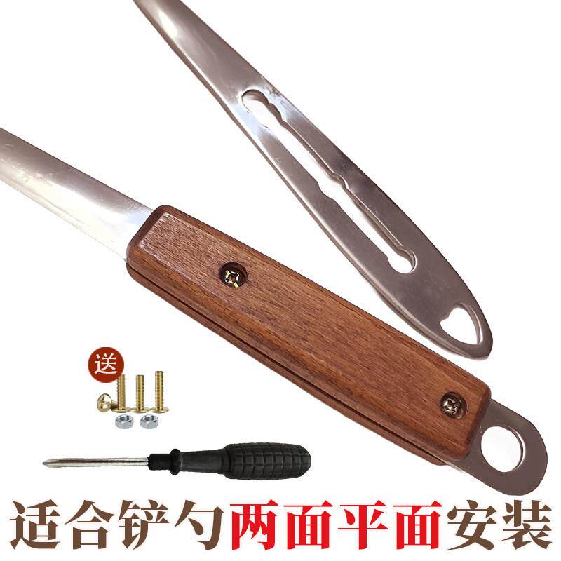 通用夹片式实木锅铲手把柄配件万能炒勺子木柄把手替换防烫套隔热