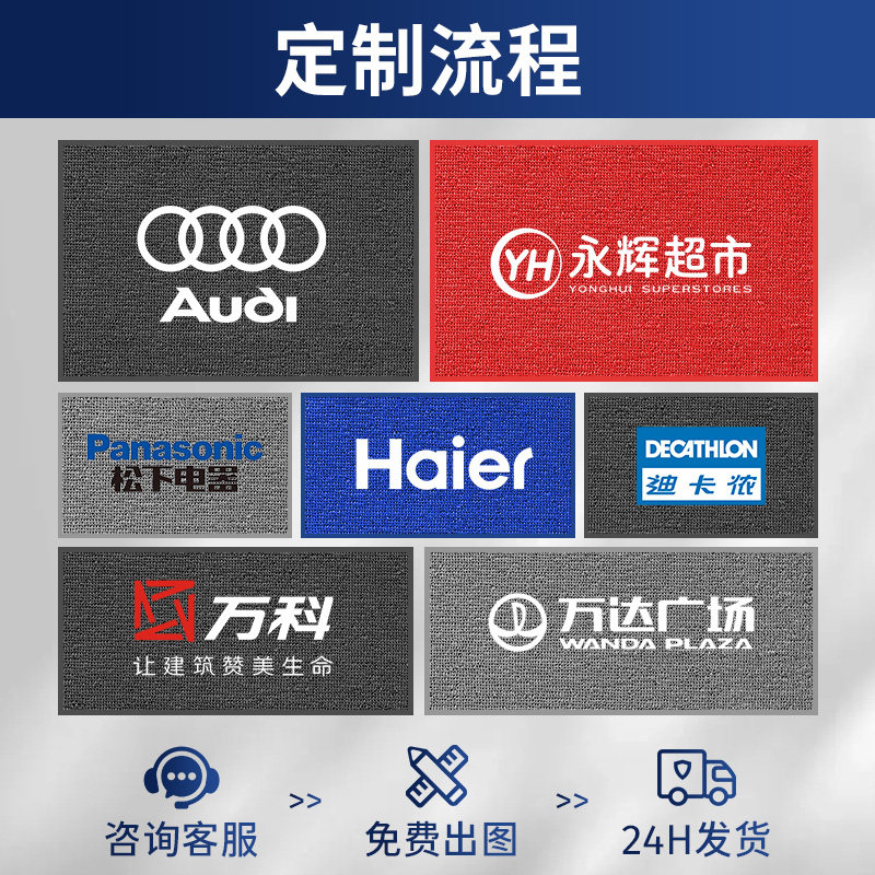 地毯定制logo图案印字公司门口地垫进门广告门垫商用丝圈迎宾脚垫