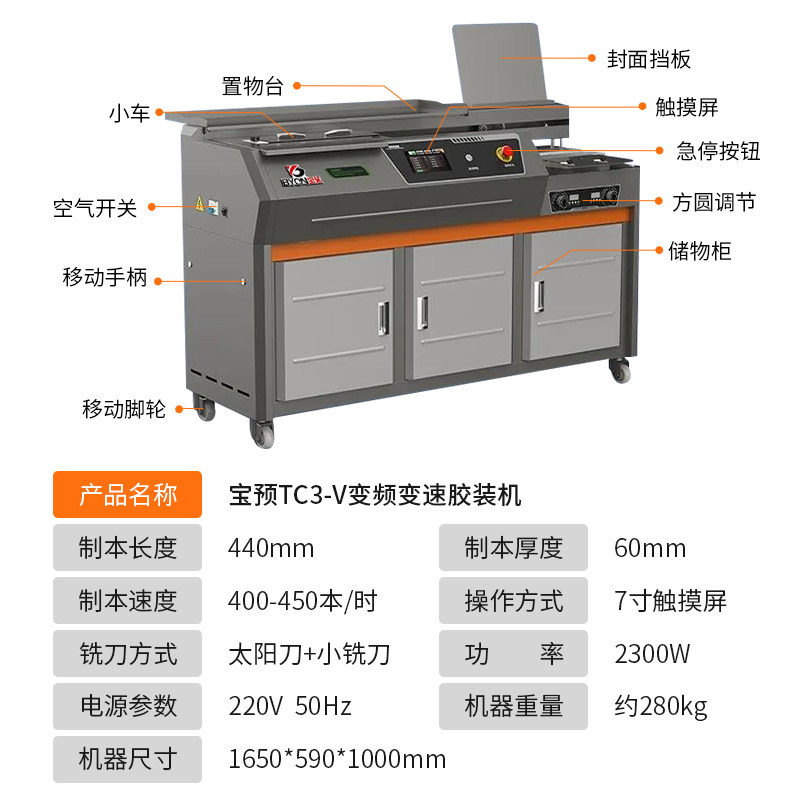 TC3-V变频高速智能胶装机侧胶a3全自动书籍热熔胶订机柜式立式办公书籍图文店设备文件标书本书籍无线装订机