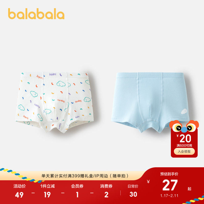 巴拉巴拉男童内裤平角儿童四角短裤亲肤不夹PP两条装舒适柔软萌趣