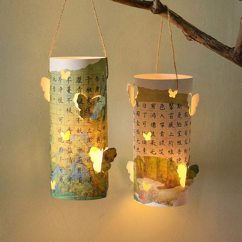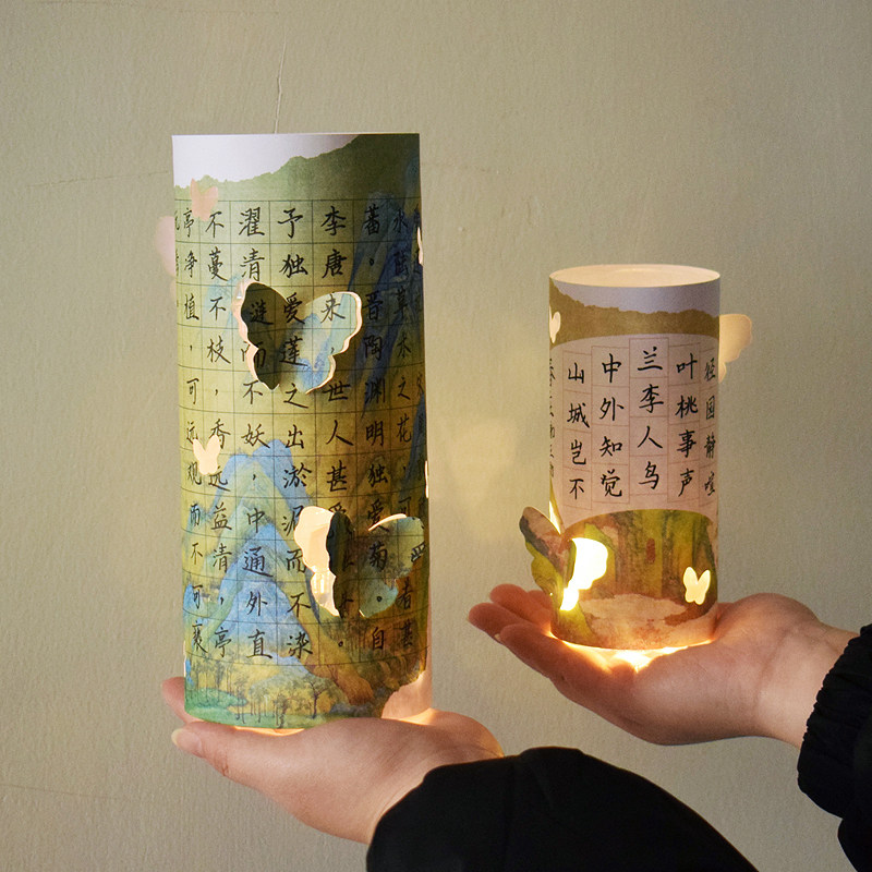 知砚新款中国风创意镂空硬笔书法展示纸透光灯笼装饰材料包DIY田字格五言七言传统复古氛围感小夜灯桌面摆件