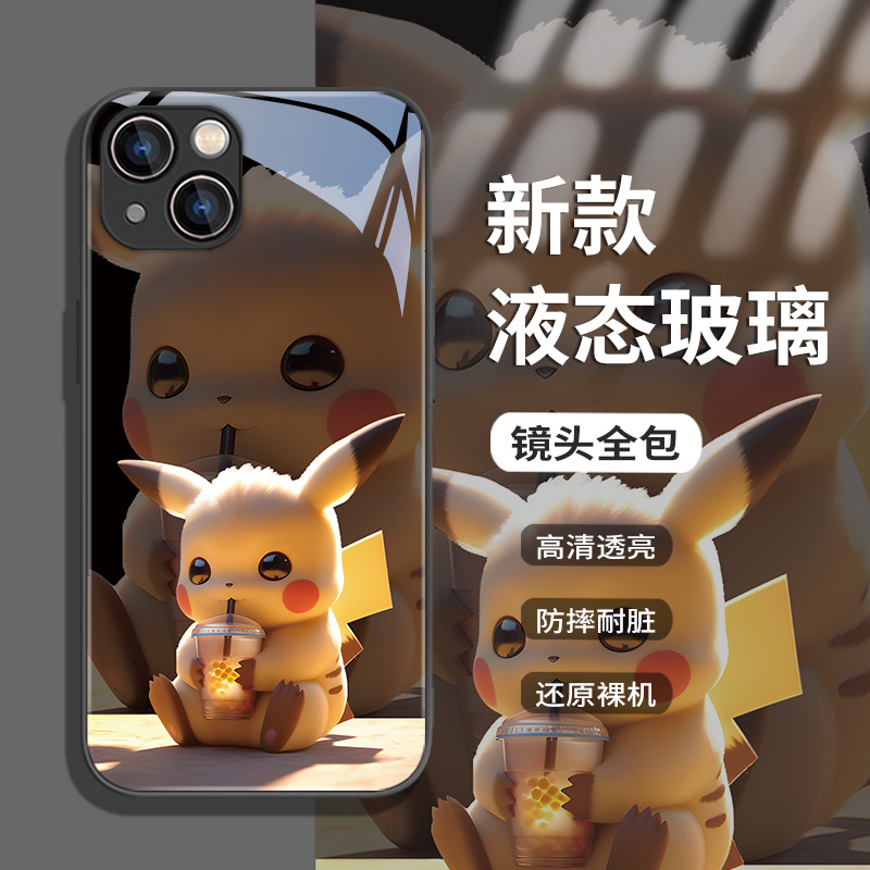 神奇宝贝适用苹果13promax手机壳14宝可梦12pro皮卡丘11新款8plus卡通17网红mini可爱xsmax玻璃iphone15套16e