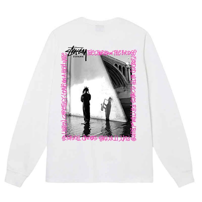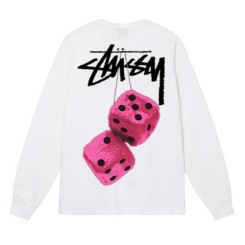 潮牌STU长袖t恤纯棉重磅300g高版本经典骰子黑八球音乐会宽松亲子