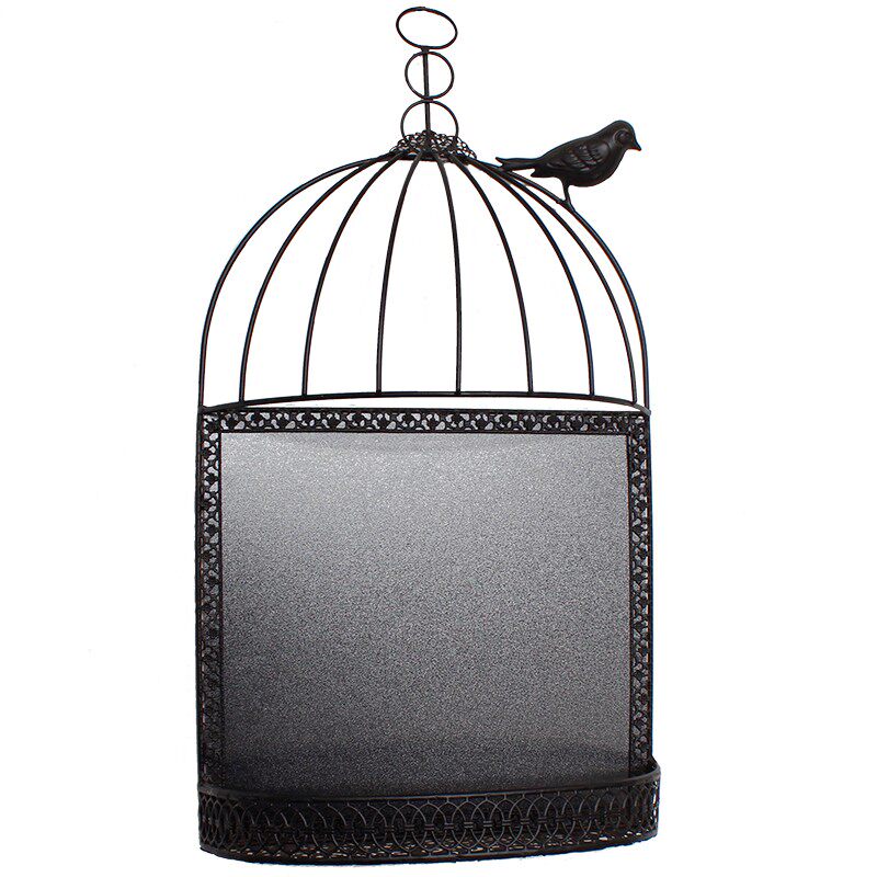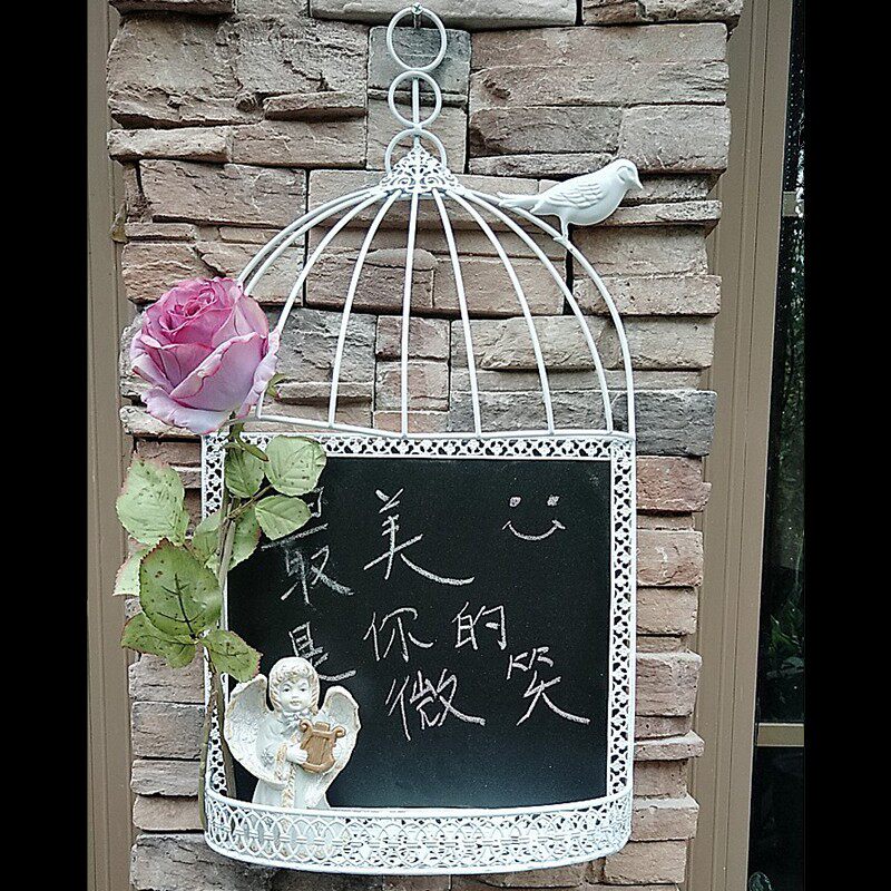 乡村风格铁艺挂式小黑板 创意鸟笼 家用留言板记事板 公告板