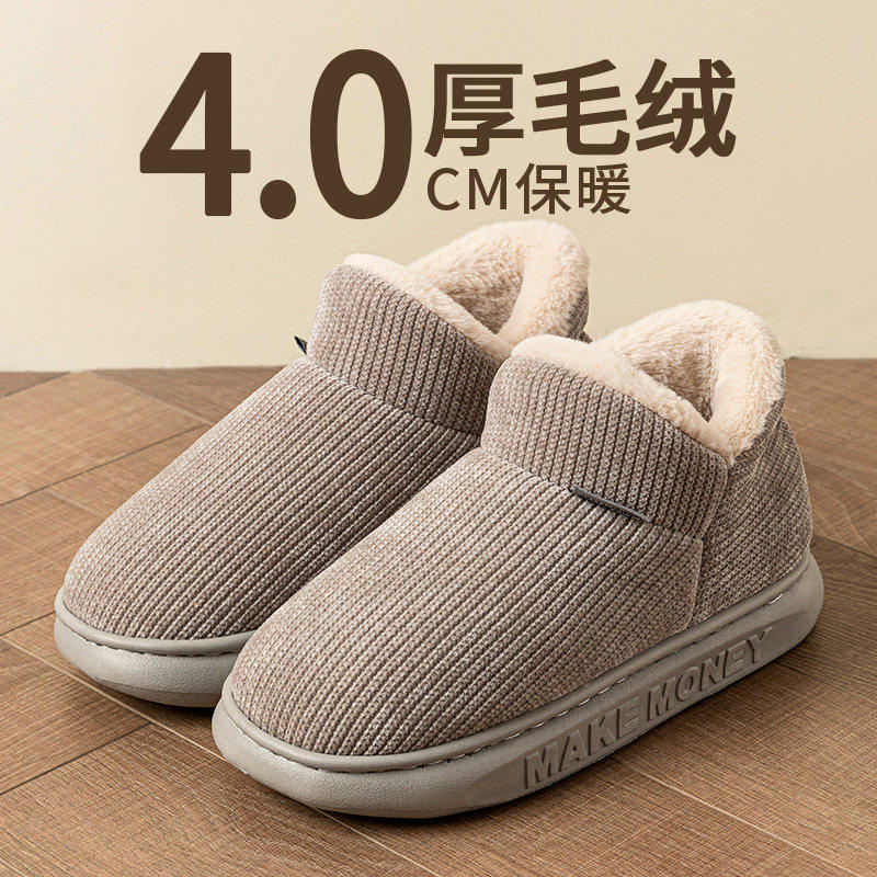 红豆踩屎感棉拖鞋女士秋冬季室内家居2025新款毛绒保暖情侣棉拖男