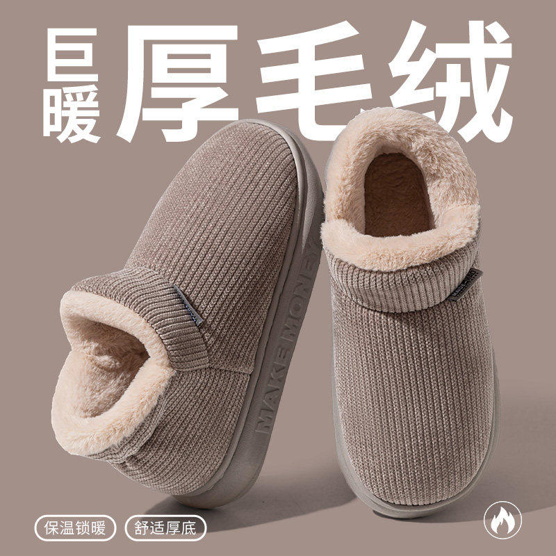 2026新款翻半包跟棉拖加绒保暖情侣外穿毛毛绒厚底防滑居家棉拖鞋