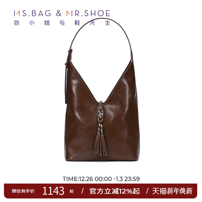 包小姐与鞋先生2026年春季新款棕褐色串珠流苏单肩包女261043