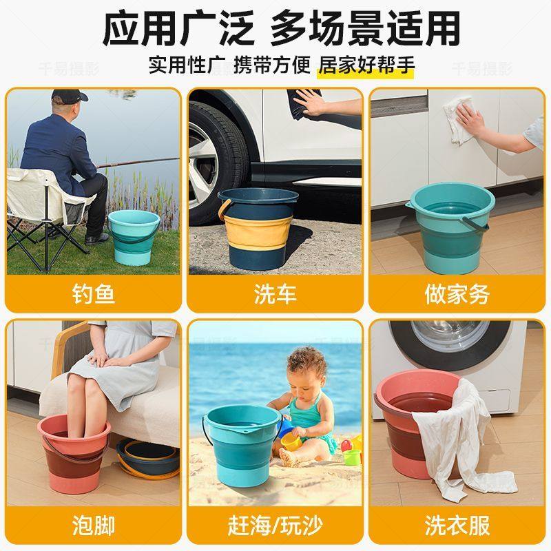 车用折叠水桶车载洗车桶塑料桶泡脚桶折叠桶拖把桶钓鱼桶便携手提