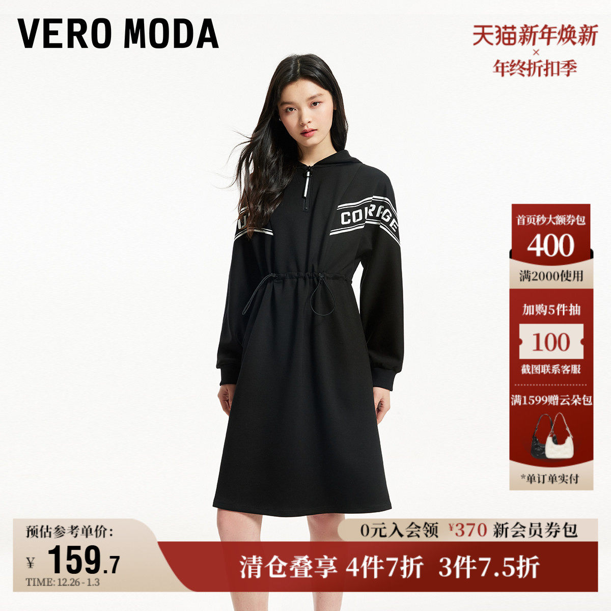 Vero Moda奥莱连衣裙秋季新款运动休闲连帽收腰显瘦长袖裙子流行
