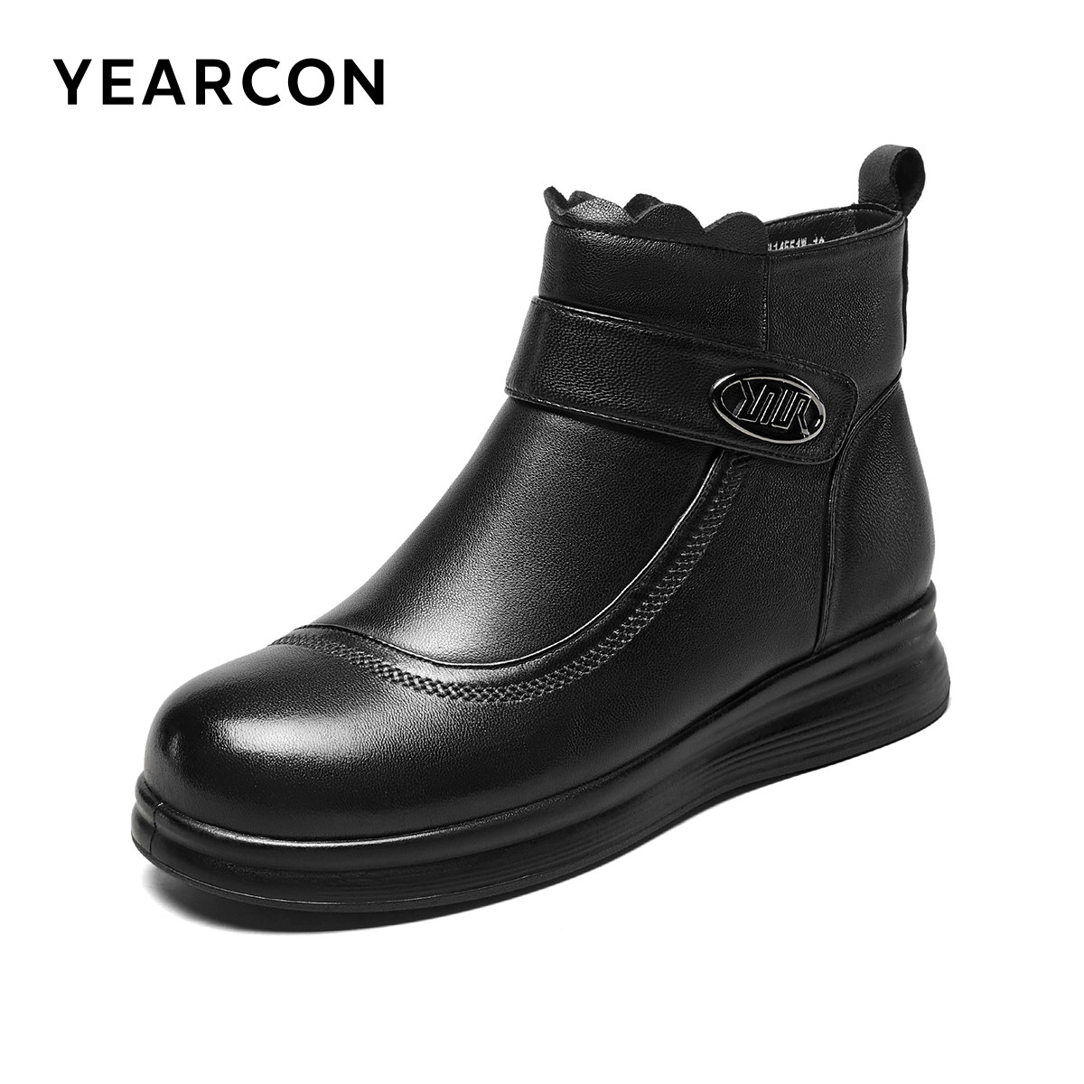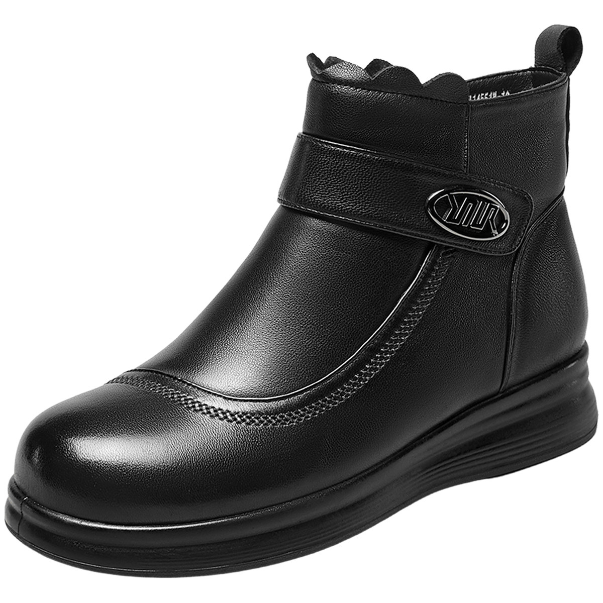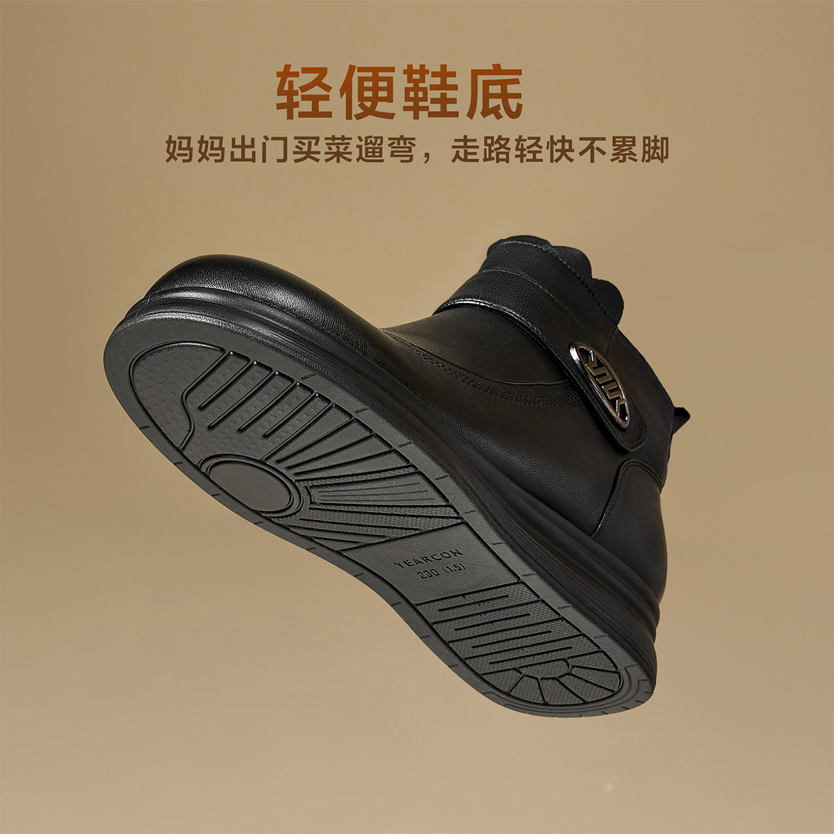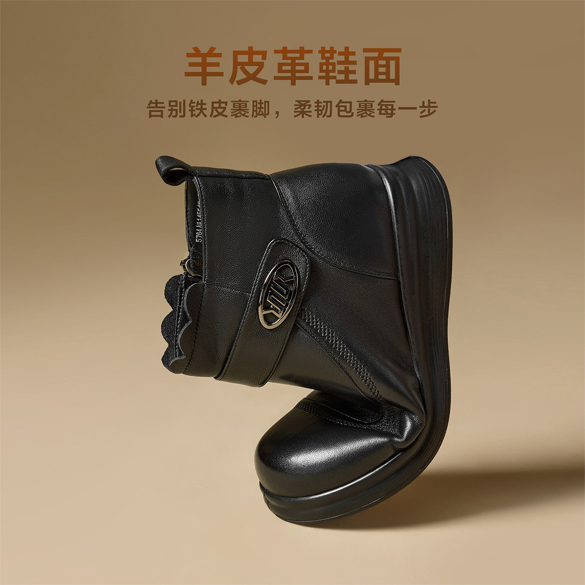 意尔康女鞋2025冬季靴子短靴真皮短筒皮靴中老年妈妈棉鞋加绒保暖
