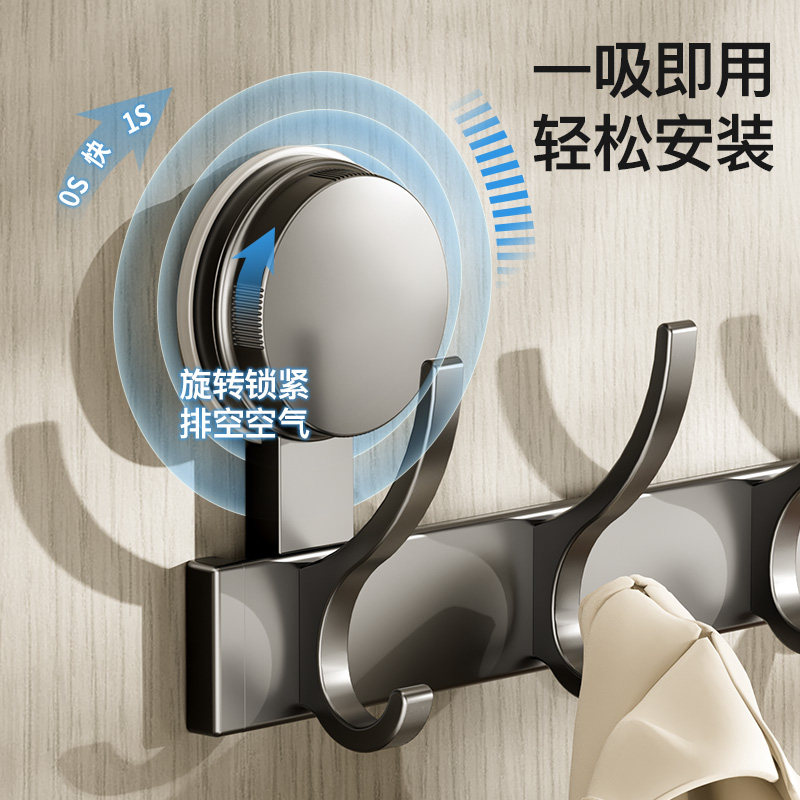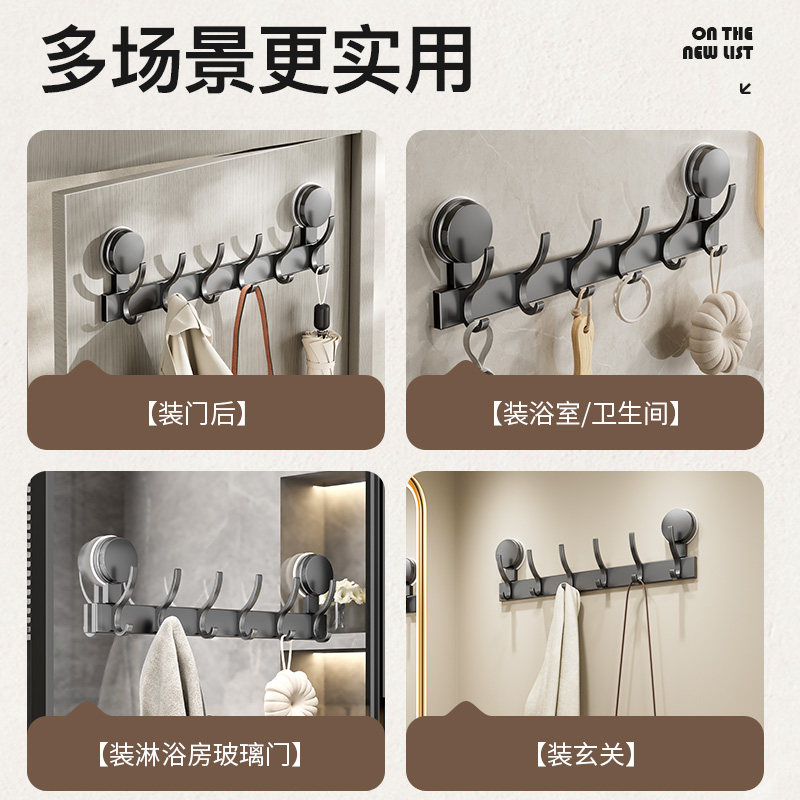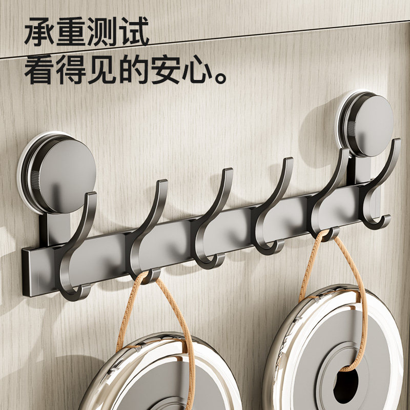 吸盘门后挂钩免打孔强力承重卫生间壁挂挂衣架浴室一排衣服毛巾灰