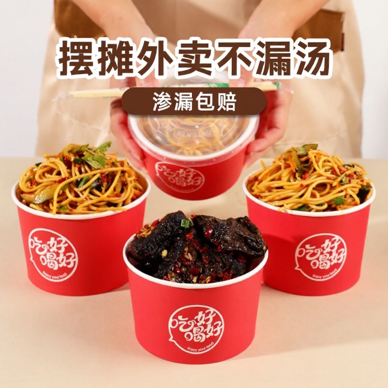 程圆商用一次性纸碗加厚圆形外卖小吃打包餐具饭盒带盖餐盒汤碗