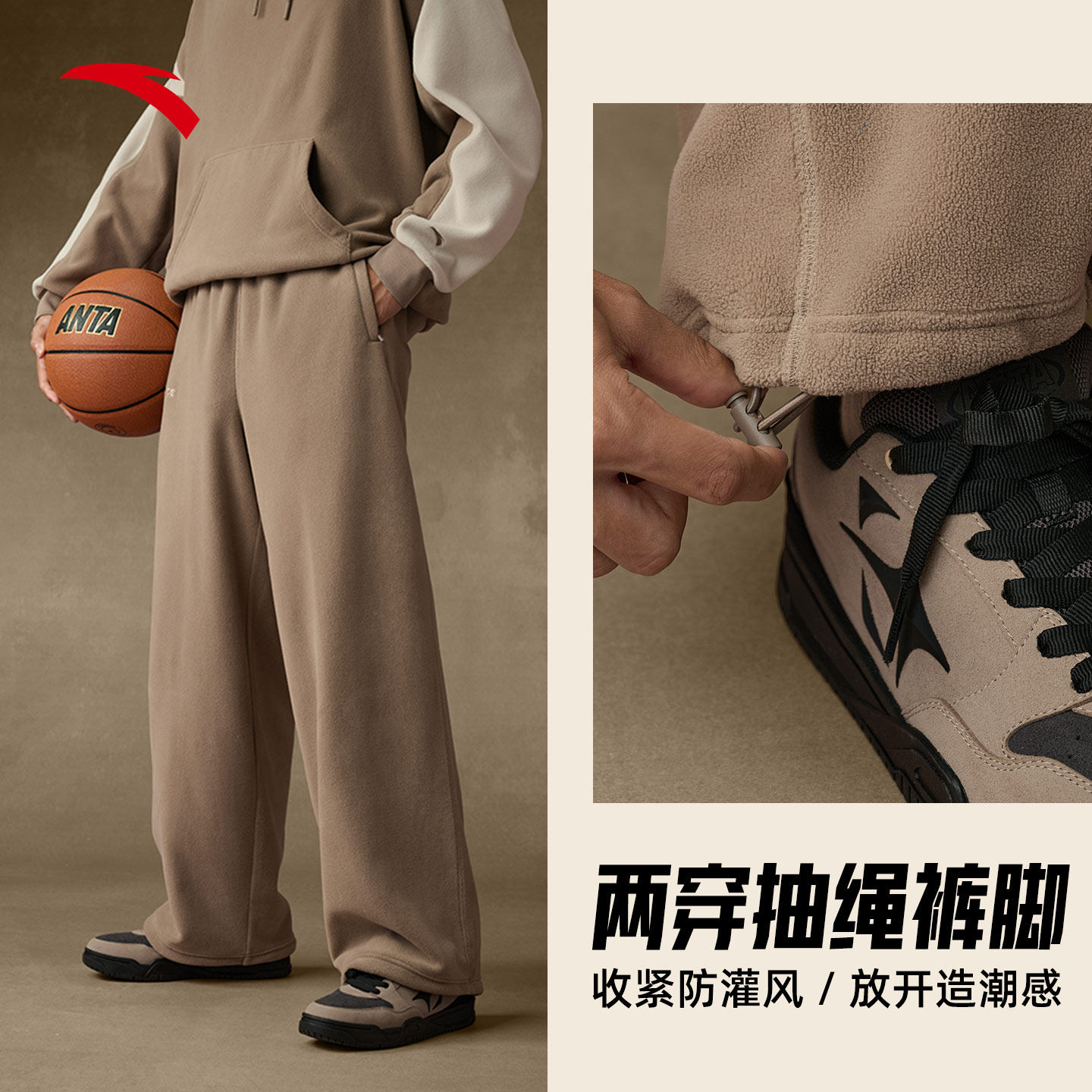 安踏6D裤丨复古美式摇粒绒长裤男冬季新款加绒直筒阔腿裤休闲裤子