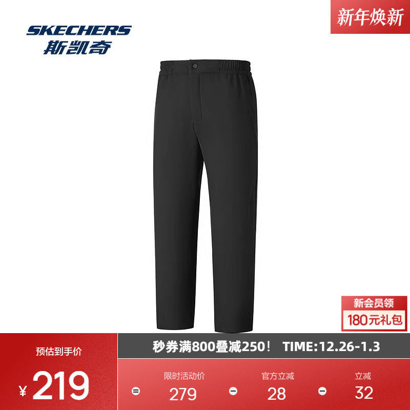斯凯奇男款长裤2026年春季新品舒适梭织束脚直筒休闲百搭运动裤