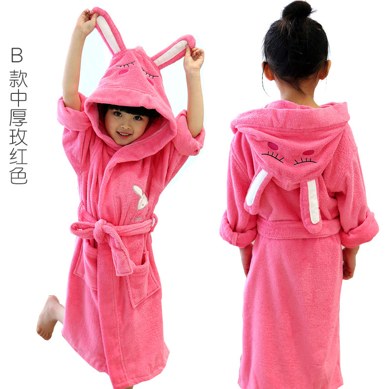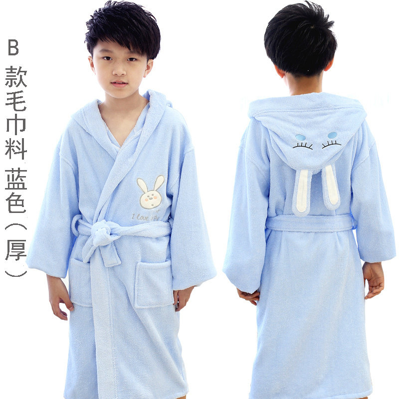 如奕纯棉儿童浴袍男童毛巾料全棉吸水速干女童秋冬季游泳洗澡睡袍