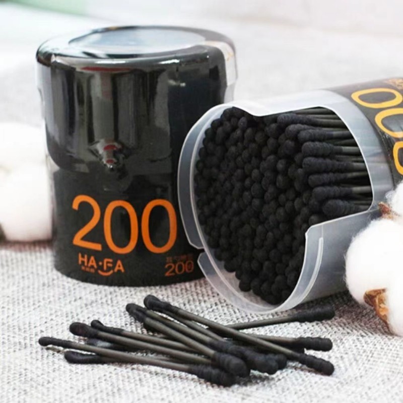 笑妈妈黑色棉签掏耳清洁用棉棒双头螺旋非木棒纸杆化妆棉棒挖耳勺