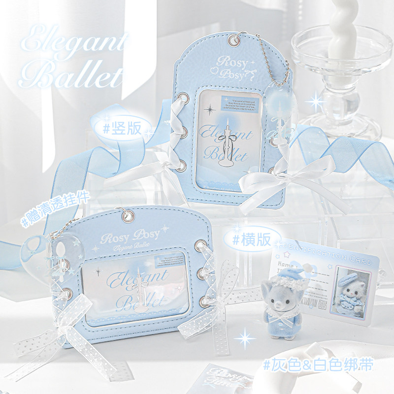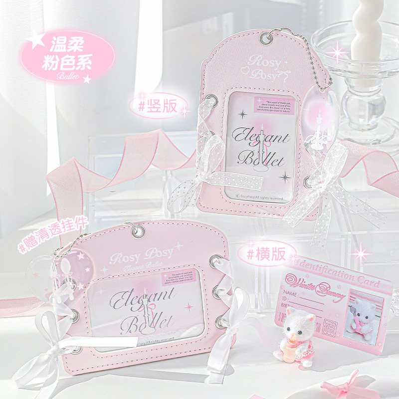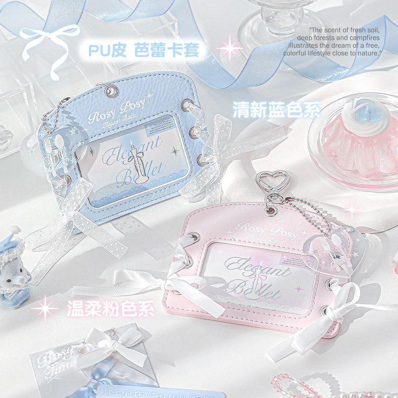 RosyPosy柔设芭蕾风卡套校园学生皮质卡套证件套饭卡地铁公交卡身份证保护套简约高颜值ins风小卡书包挂件