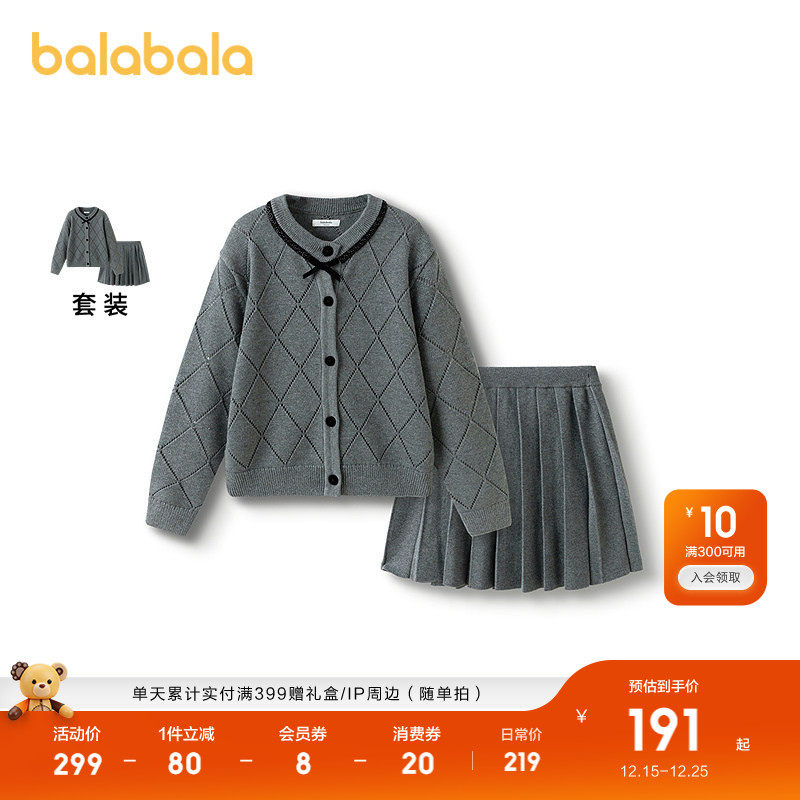 巴拉巴拉童装女童长袖套装儿童针织套裙2025新款春秋装两件套时尚