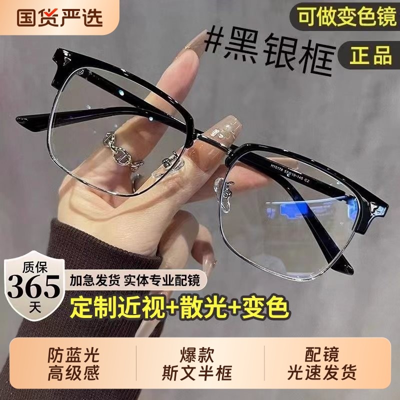 半框近视眼镜男款防蓝光平光镜可配度数高级感斯文理工男痞帅眼睛