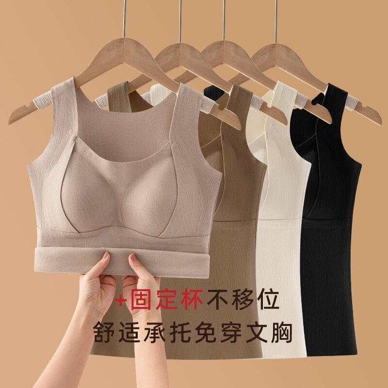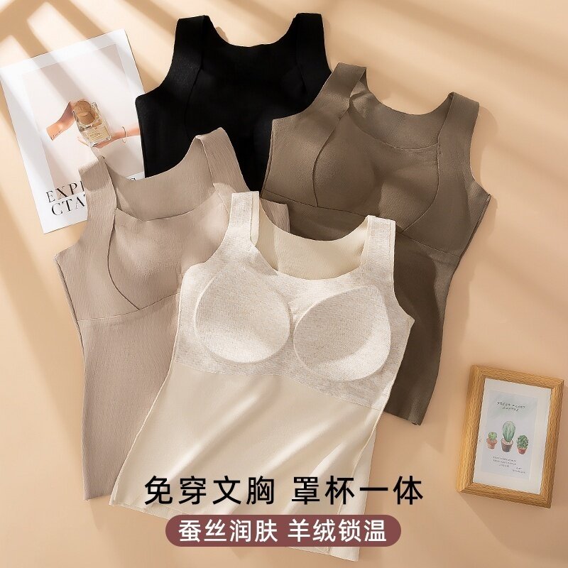 无痕保暖背心女带胸垫秋冬免穿文胸一体式吊带内搭打底衫上衣冬季