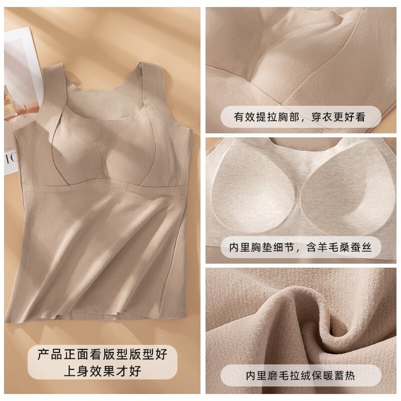 羊绒保暖背心女带胸垫秋冬加绒吊带胸罩一体式内衣冬季内搭打底衫