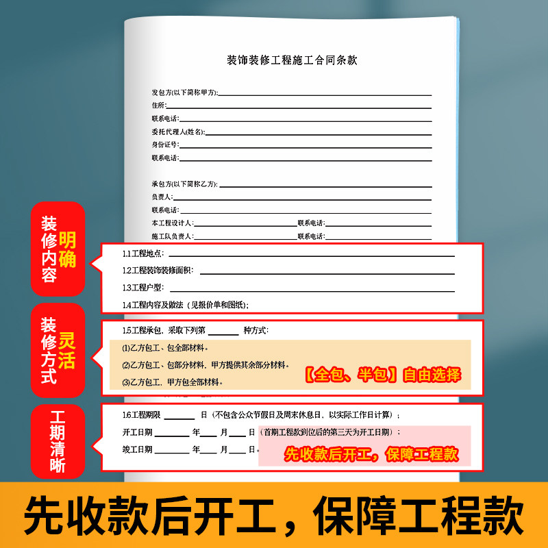 装修合同家装合同装修施工合同协议书定制封面装修收据装饰公司装修合同书全屋定制销售单装修收据律师版