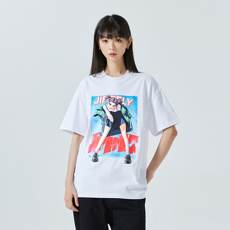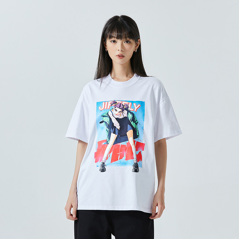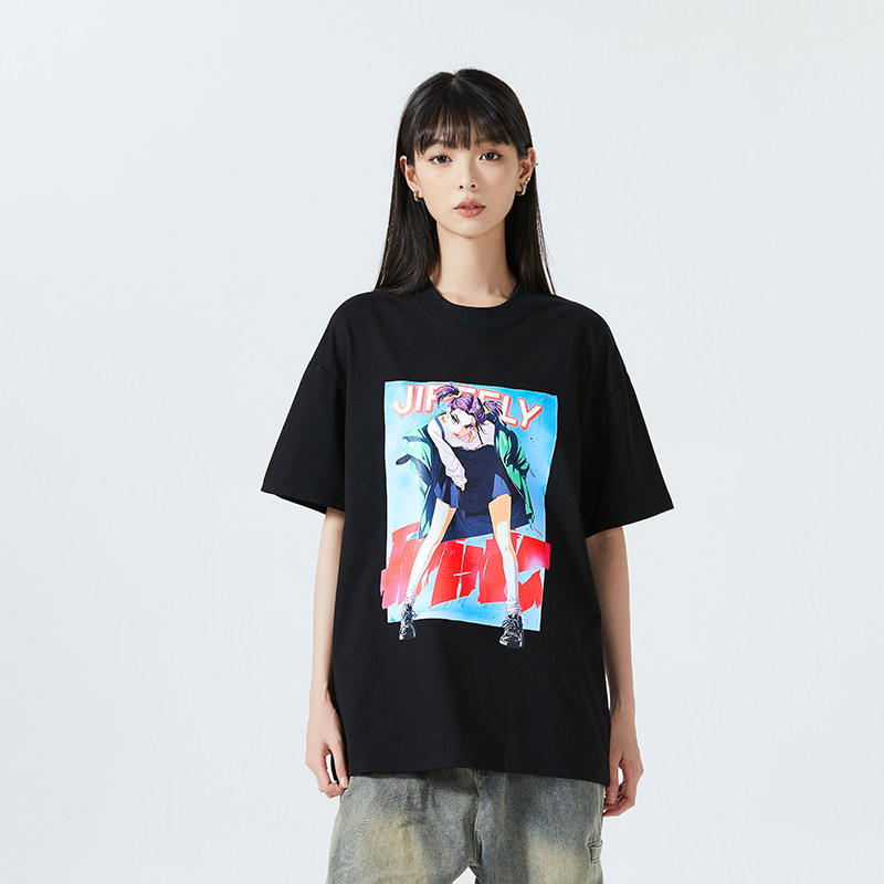Jifffly短袖印花T恤女2025夏季爆款内搭黑色半袖新款宽松圆领上衣