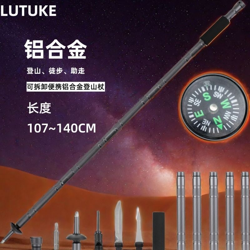 户外登山杖手杖超轻伸缩款铝合金拐杖多功能男女徒步爬山登山装备