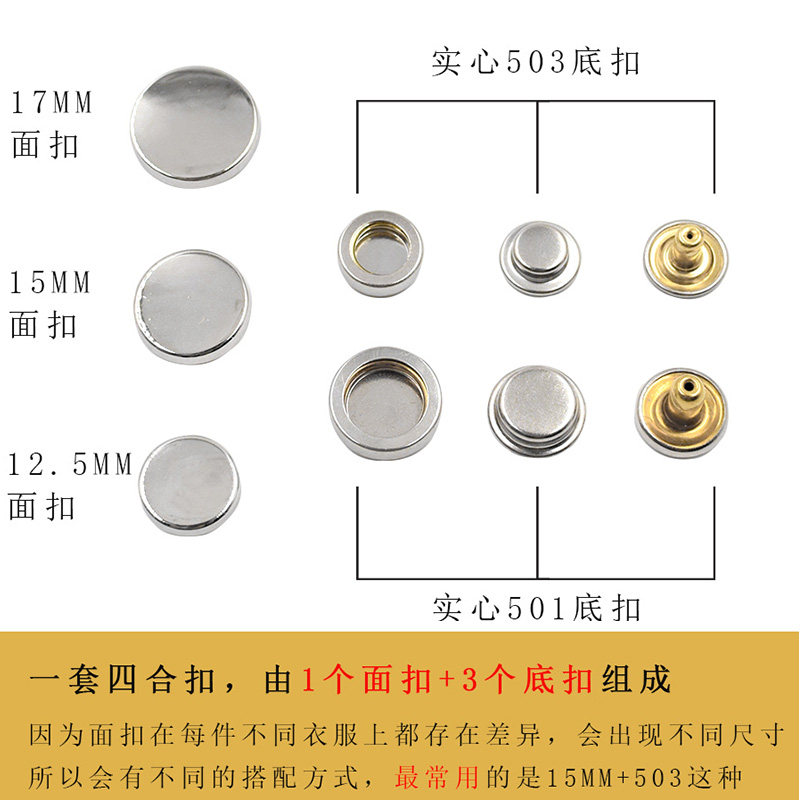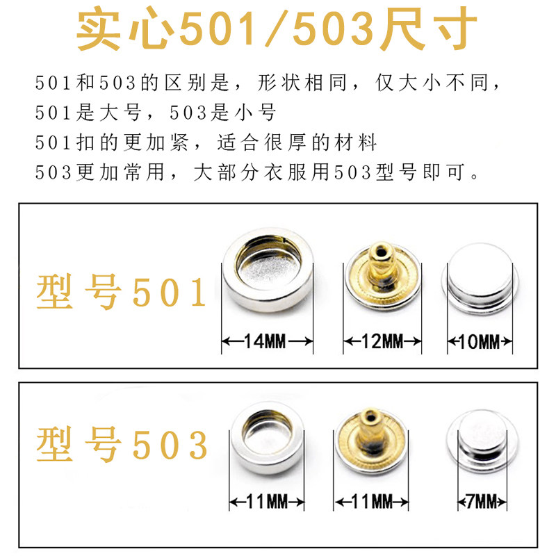 配套高档四合扣实心501/503金属纽扣羽绒服外套子母扣免缝按扣圆
