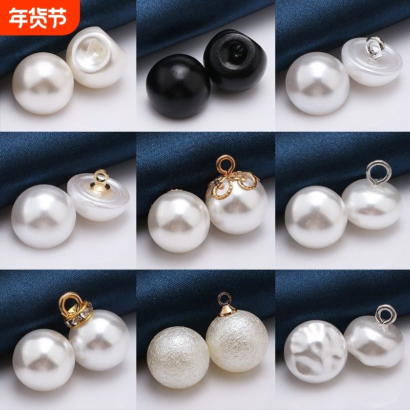 黑色白色珍珠扣仿珍珠旗袍古装纽扣蘑菇扣光头扣圆形铜脚馒头扣子