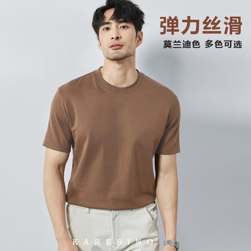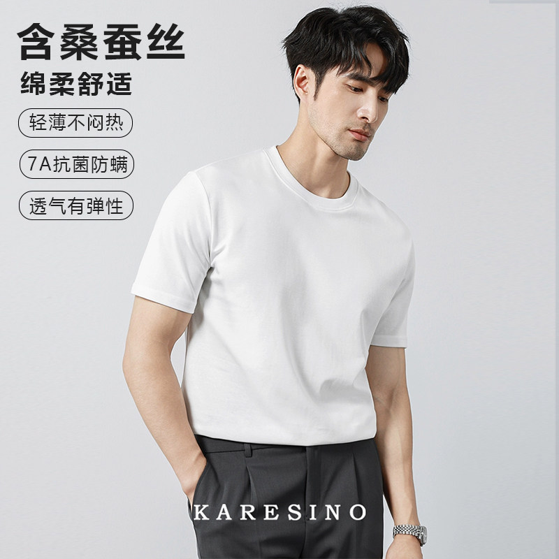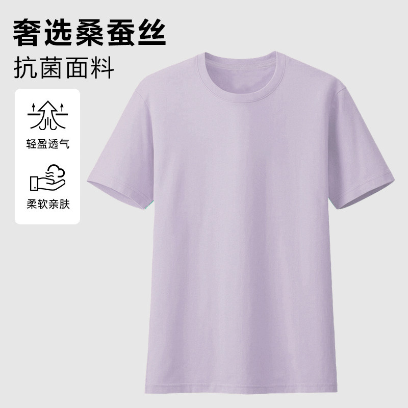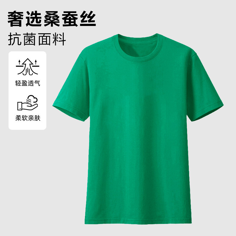 男士短袖t恤2025新款桑蚕丝半袖薄款凉感纯色吸汗透气高端打底衫