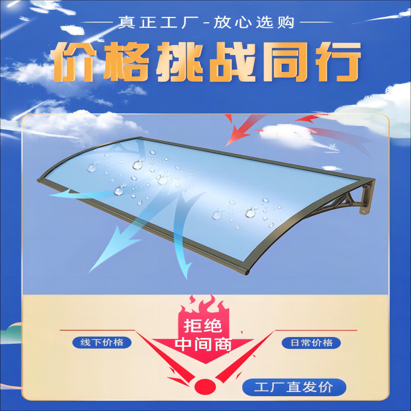 铝合金遮阳雨棚屋檐家用窗户庭院门头阳台遮雨挡板无声耐力板雨篷