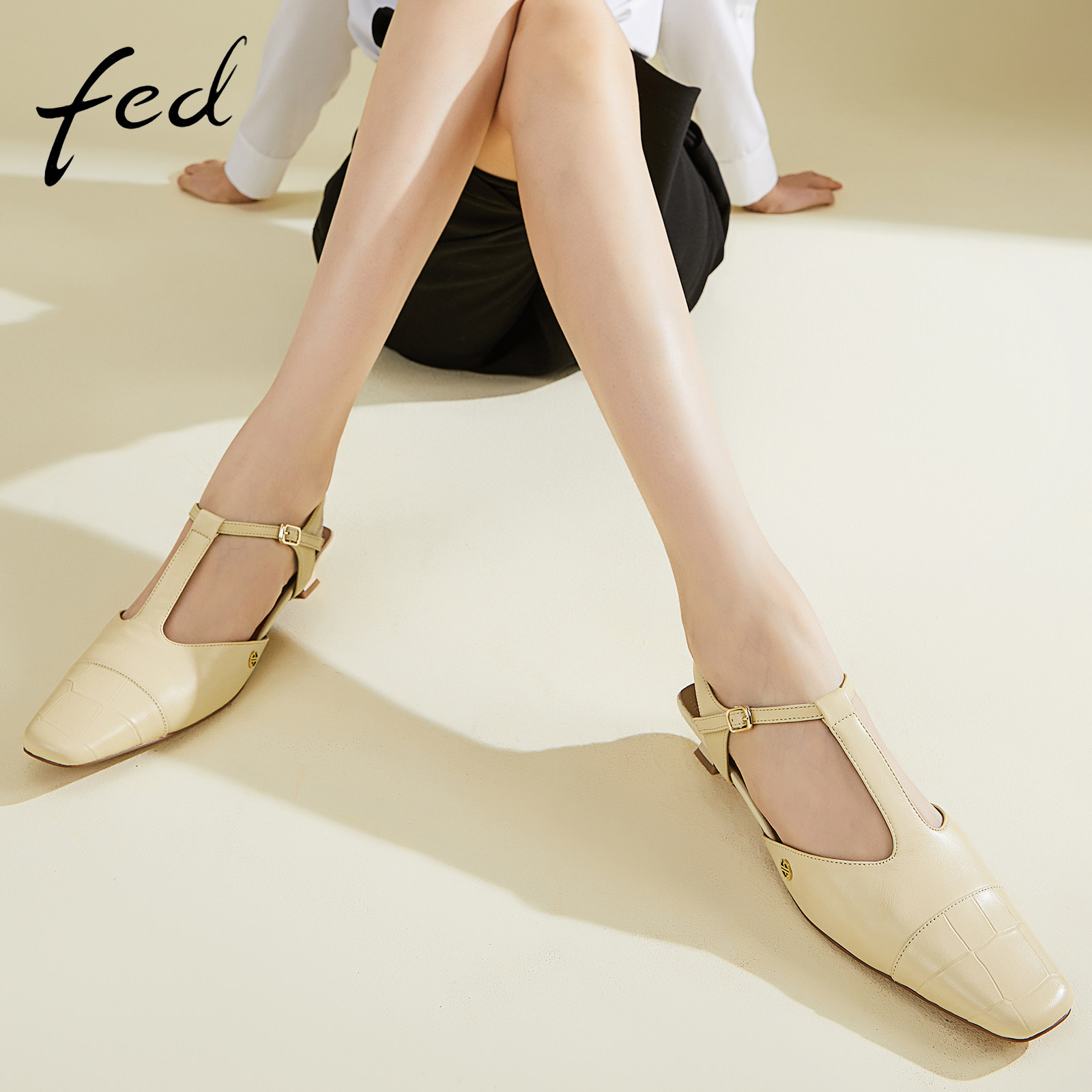 fed法式单鞋夏季新款女鞋T字带包头凉鞋玛丽珍鞋女款D0415-YAB930